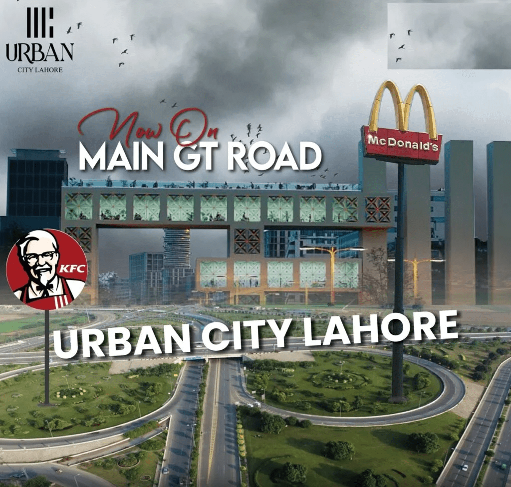 Urban City Lahore is located on Main GT Road in Kala Shah Kaku. Its City Venture District Block’s entrance is located on Main GT Road opposite to the MacDonald & KFC Kala Shah Kaku Franchises. Its other entrance is located on Muridke-Norowal Road few kilometers away from the Qarshi Interchage of Lahore Sialkot Motorway. It has easy access from different roads.